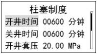 該菜單用于設置柱塞制度下的自動開關井壓力及最大最小開關井時間,?壓力范圍 0~99.99MPa。