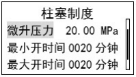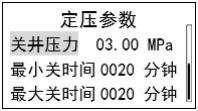 該菜單用于設置定壓制度下的自動開關井壓力及最大最小開關井時間,?壓力范圍 0~99.99MPa。